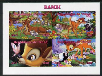Chad 2014 Walt Disney's Bambi imperf sheetlet containing 4 values unmounted mint. Note this item is privately produced and is offered purely on its thematic appeal. .