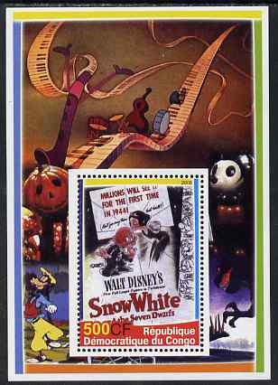 Congo 2005 Disney Movie Posters - Snow White perf souvenir sheet unmounted mint. Note this item is privately produced and is offered purely on its thematic appeal