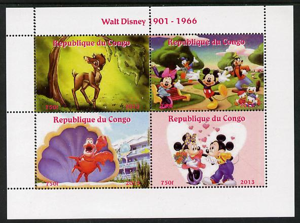 Congo 2013 Walt Disney Characters #1 perf sheetlet containing four values unmounted mint. Note this item is privately produced and is offered purely on its thematic appeal
