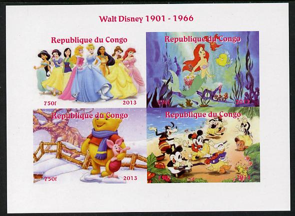 Congo 2013 Walt Disney Characters #2 imperf sheetlet containing four values unmounted mint. Note this item is privately produced and is offered purely on its thematic appeal