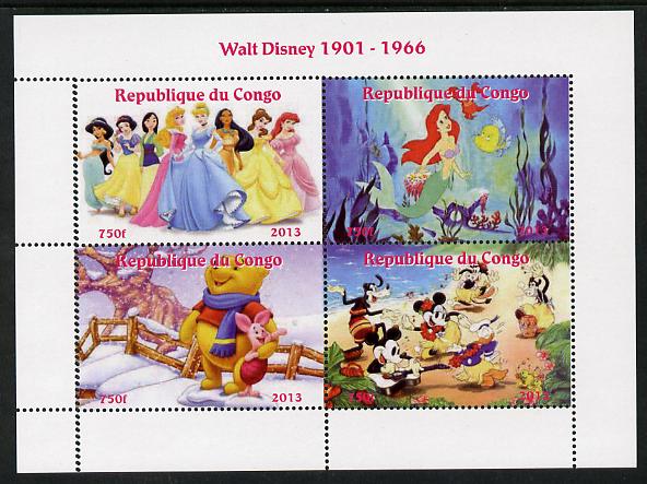 Congo 2013 Walt Disney Characters #2 perf sheetlet containing four values unmounted mint. Note this item is privately produced and is offered purely on its thematic appeal