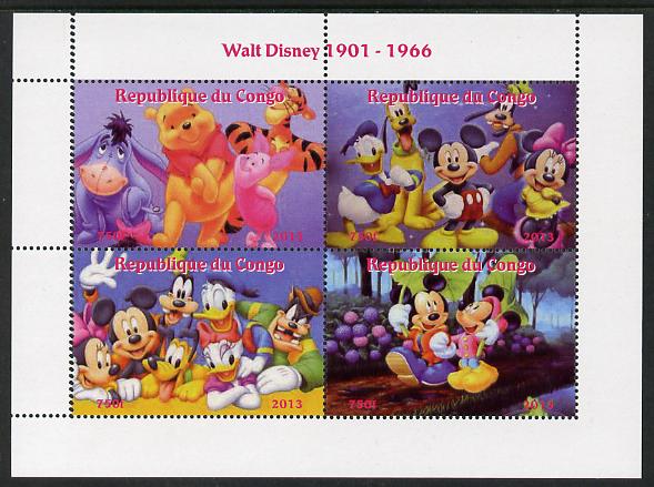 Congo 2013 Walt Disney Characters #3 perf sheetlet containing four values unmounted mint. Note this item is privately produced and is offered purely on its thematic appeal