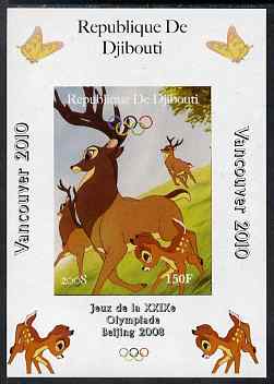 Djibouti 2008 Beijing & Vancouver Olympics - Disney - Bambi imperf deluxe sheet #4 unmounted mint. Note this item is privately produced and is offered purely on its thematic appeal