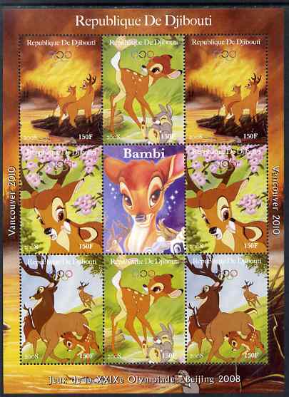 Djibouti 2008 Beijing & Vancouver Olympics - Disney - Bambi perf sheetlet containing 8 values plus label unmounted mint. Note this item is privately produced and is offered purely on its thematic appeal