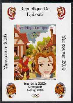 Djibouti 2008 Beijing & Vancouver Olympics - Disney - Beauty & the Beast imperf deluxe sheet #1 unmounted mint. Note this item is privately produced and is offered purely on its thematic appeal