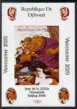 Djibouti 2008 Beijing & Vancouver Olympics - Disney - Beauty & the Beast imperf deluxe sheet #4 unmounted mint. Note this item is privately produced and is offered purely on its thematic appeal