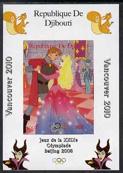 Djibouti 2008 Beijing & Vancouver Olympics - Disney - Sleeping Beauty imperf deluxe sheet #1 unmounted mint. Note this item is privately produced and is offered purely on its thematic appeal