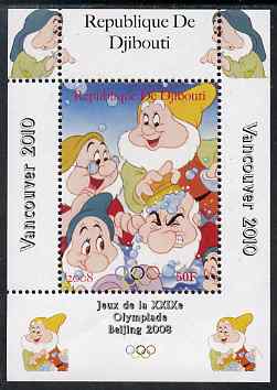 Djibouti 2008 Beijing & Vancouver Olympics - Disney - Snow White perf deluxe sheet #4 unmounted mint. Note this item is privately produced and is offered purely on its thematic appeal