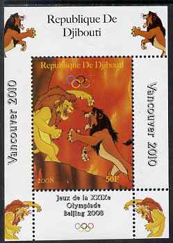 Djibouti 2008 Beijing & Vancouver Olympics - Disney - The Lion King perf deluxe sheet #1 unmounted mint. Note this item is privately produced and is offered purely on its thematic appeal