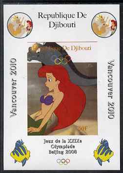 Djibouti 2008 Beijing & Vancouver Olympics - Disney - The Little Mermaid imperf deluxe sheet #1 unmounted mint. Note this item is privately produced and is offered purely on its thematic appeal