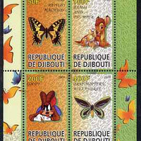 Djibouti 2009 Butterflies and Disney Characters #1 perf sheetlet containing 4 values unmounted mint