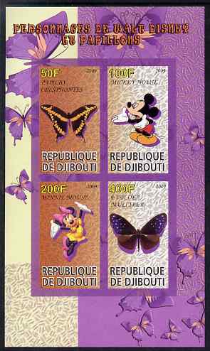 Djibouti 2009 Butterflies and Disney Characters #2 imperf sheetlet containing 4 values unmounted mint