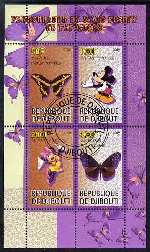 Djibouti 2009 Butterflies and Disney Characters #2 perf sheetlet containing 4 values fine cto used