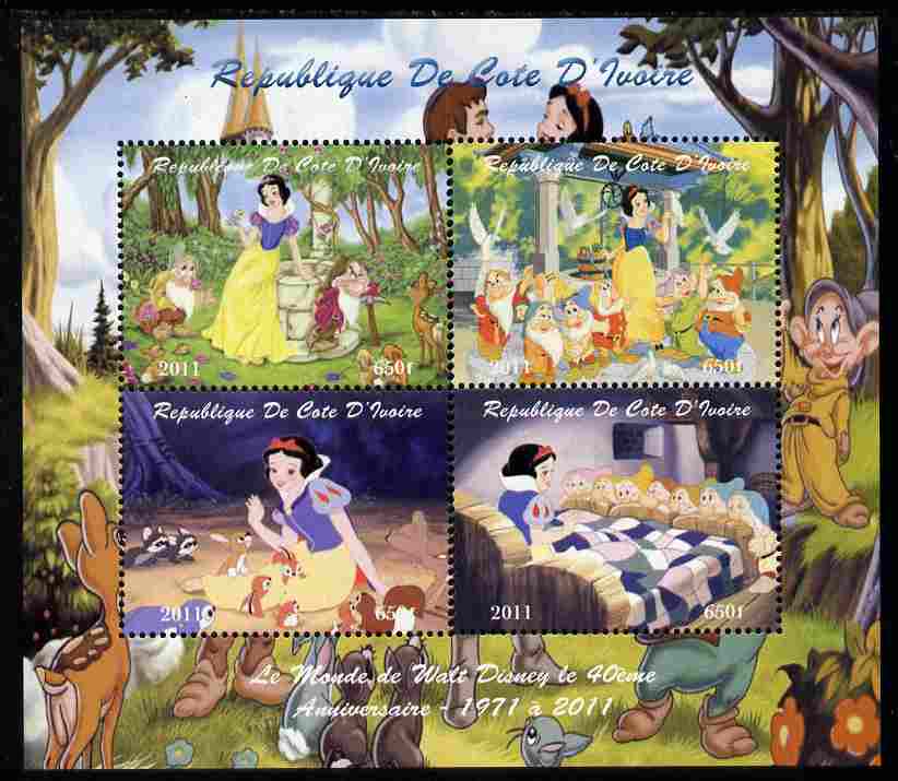 Ivory Coast 2011 The World of Walt Disney - Snow White perf sheetlet containing 4 values unmounted mint. Note this item is privately produced and is offered purely on its thematic appeal, it has no postal validity