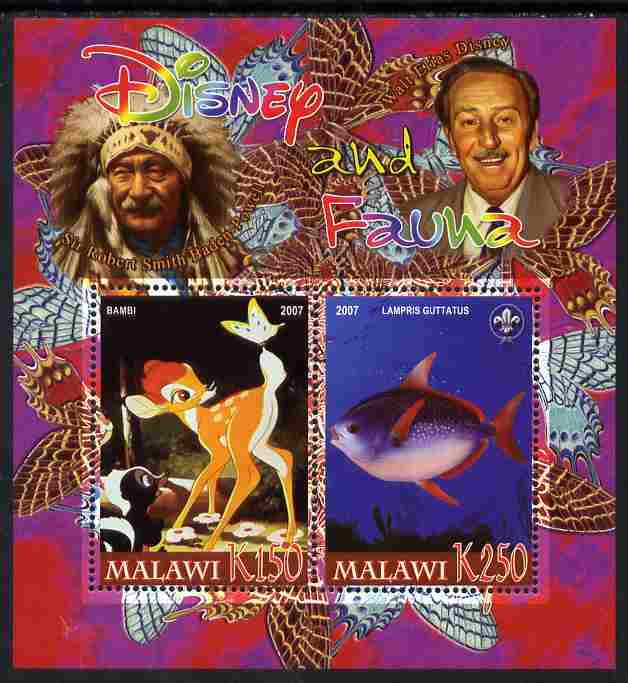 Malawi 2007 Disney & Fauna #02 perf sheetlet containing 2 values unmounted mint. Note this item is privately produced and is offered purely on its thematic appeal, it has no postal validity