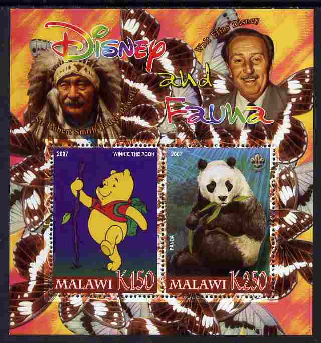 Malawi 2007 Disney & Fauna #06 perf sheetlet containing 2 values unmounted mint. Note this item is privately produced and is offered purely on its thematic appeal, it has no postal validity