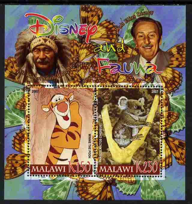 Malawi 2007 Disney & Fauna #07 perf sheetlet containing 2 values unmounted mint. Note this item is privately produced and is offered purely on its thematic appeal, it has no postal validity