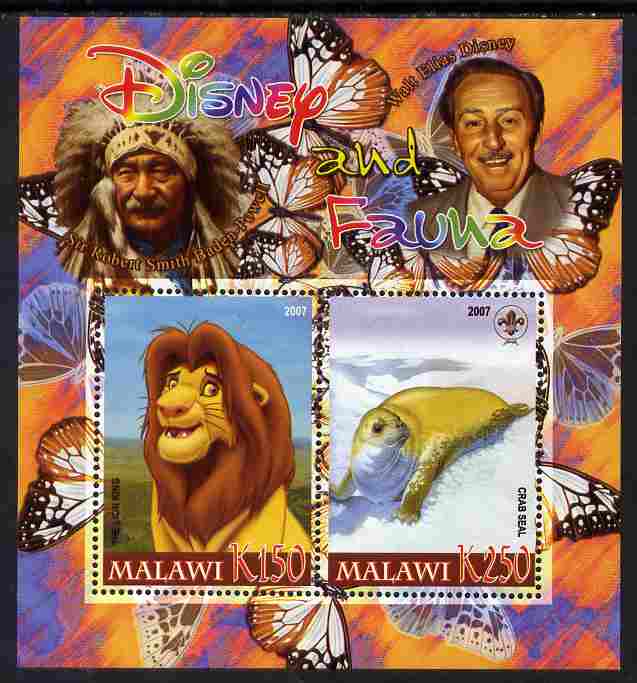 Malawi 2007 Disney & Fauna #18 perf sheetlet containing 2 values unmounted mint. Note this item is privately produced and is offered purely on its thematic appeal, it has no postal validity