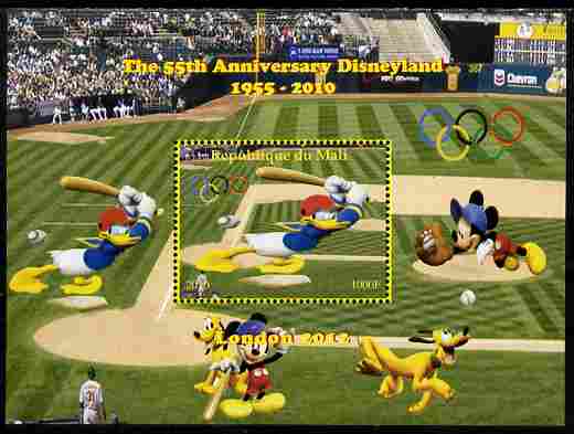 Mali 2010 The 55th Anniversary of Disneyland - Baseball #1 perf s/sheet unmounted mint. Note this item is privately produced and is offered purely on its thematic appeal,