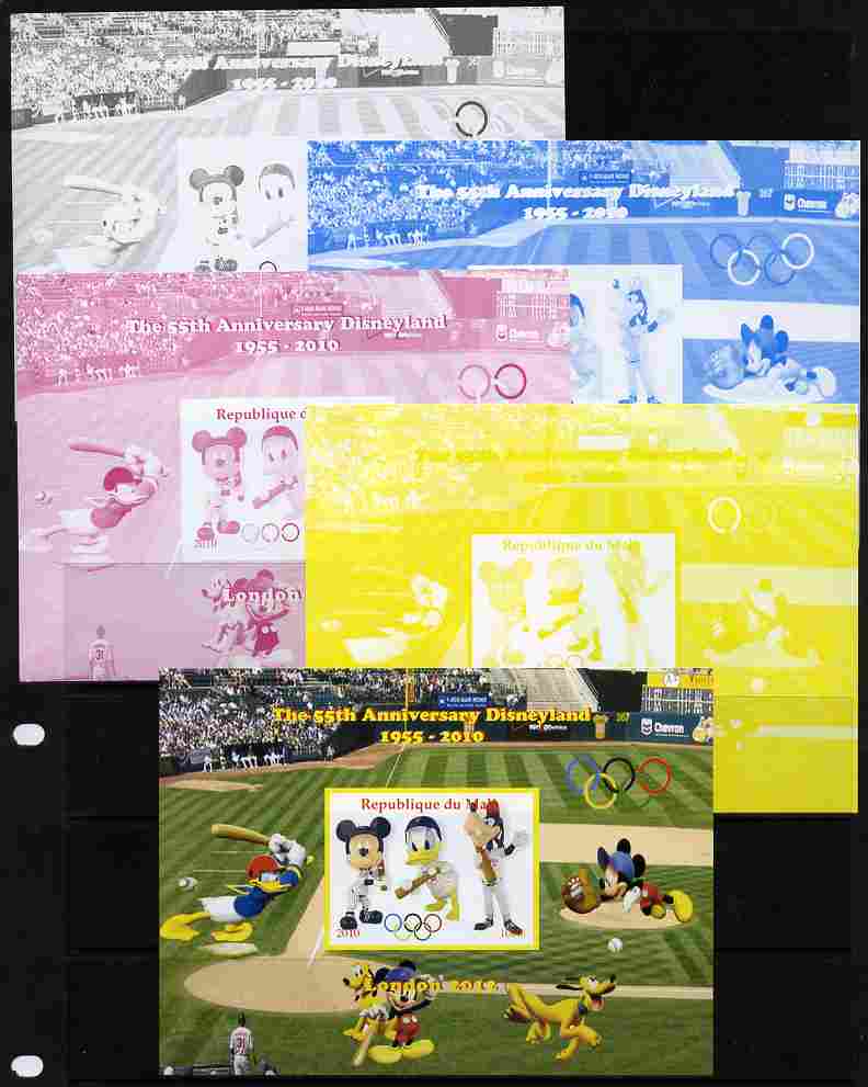 Mali 2010 The 55th Anniversary of Disneyland - Baseball #4 s/sheet - the set of 5 imperf progressive proofs comprising the 4 individual colours plus all 4-colour composite, unmounted mint