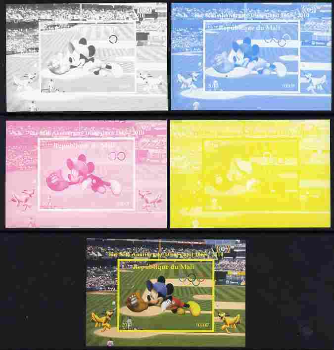 Mali 2010 The 55th Anniversary of Disneyland - Baseball #5 individual deluxe sheet - the set of 5 imperf progressive proofs comprising the 4 individual colours plus all 4-colour composite, unmounted mint