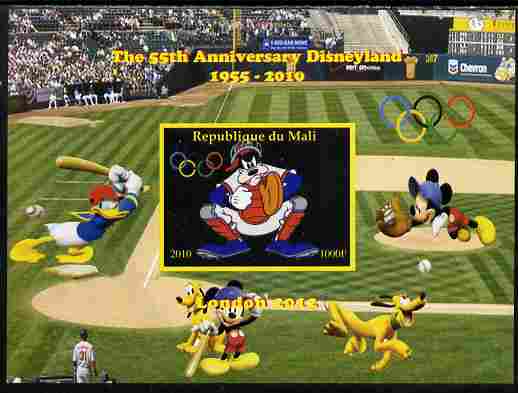 Mali 2010 The 55th Anniversary of Disneyland - Baseball #6 imperf s/sheet unmounted mint. Note this item is privately produced and is offered purely on its thematic appeal,