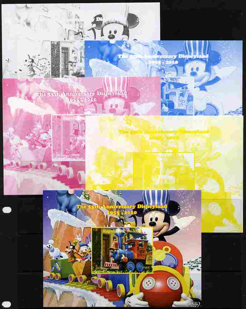 Mali 2010 The 55th Anniversary of Disneyland - Mickey Mouse Railway #07 s/sheet - the set of 5 imperf progressive proofs comprising the 4 individual colours plus all 4-colour composite, unmounted mint
