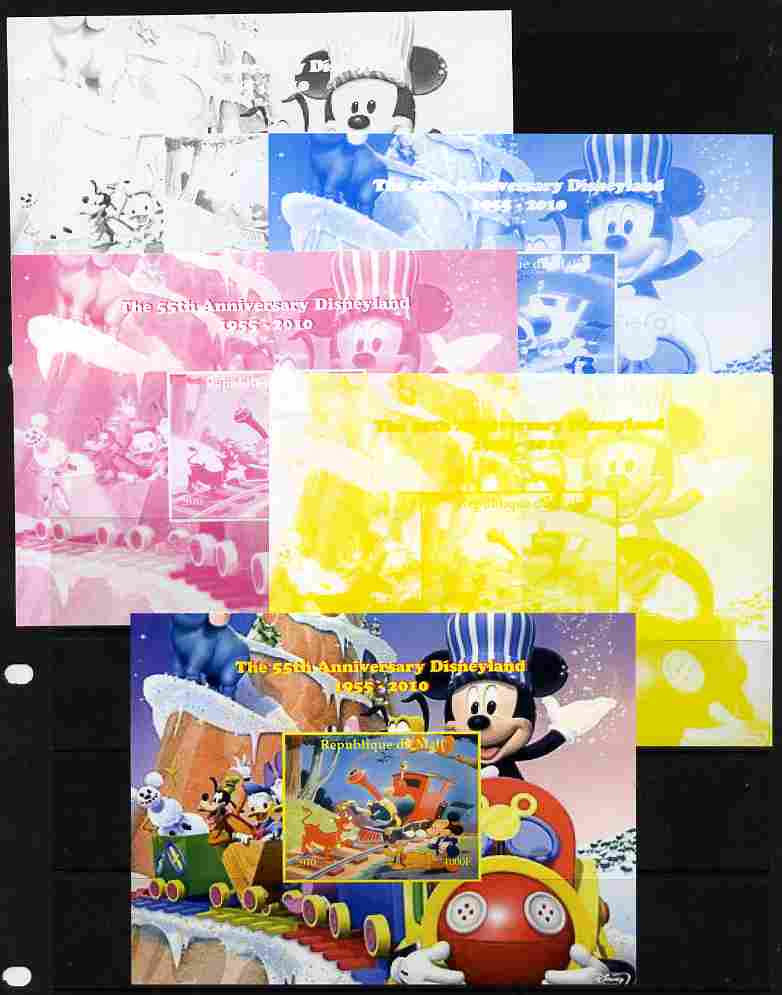Mali 2010 The 55th Anniversary of Disneyland - Mickey Mouse Railway #08 s/sheet - the set of 5 imperf progressive proofs comprising the 4 individual colours plus all 4-colour composite, unmounted mint