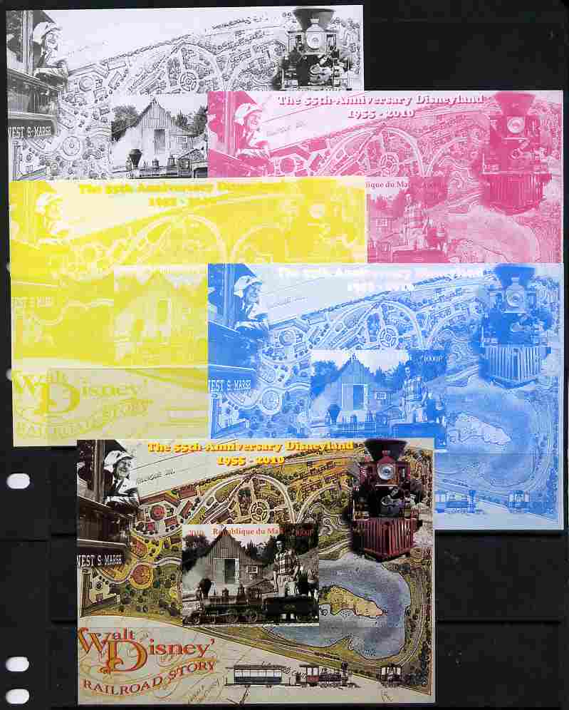 Mali 2010 The 55th Anniversary of Disneyland - Walt Disney's Railroad Story #01 s/sheet - the set of 5 imperf progressive proofs comprising the 4 individual colours plus all 4-colour composite, unmounted mint