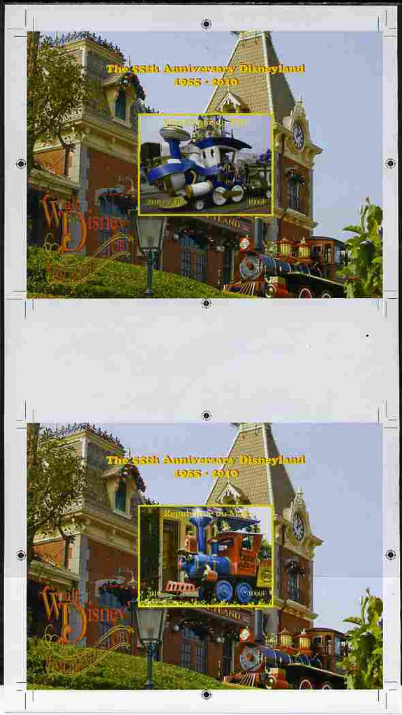 Mali 2010 The 55th Anniversary of Disneyland - Walt Disney's Railroad Story s/sheets #13 & #14 se-tenant from uncut imperf proof sheet (3 exist) unmounted mint