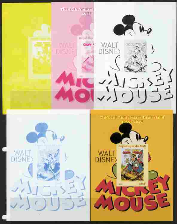 Mali 2011 Mickey Mouse & 55th Anniversary of Disneyland #4 m/sheet - the set of 5 imperf progressive proofs comprising the 4 individual colours plus all 4-colour composite, unmounted mint