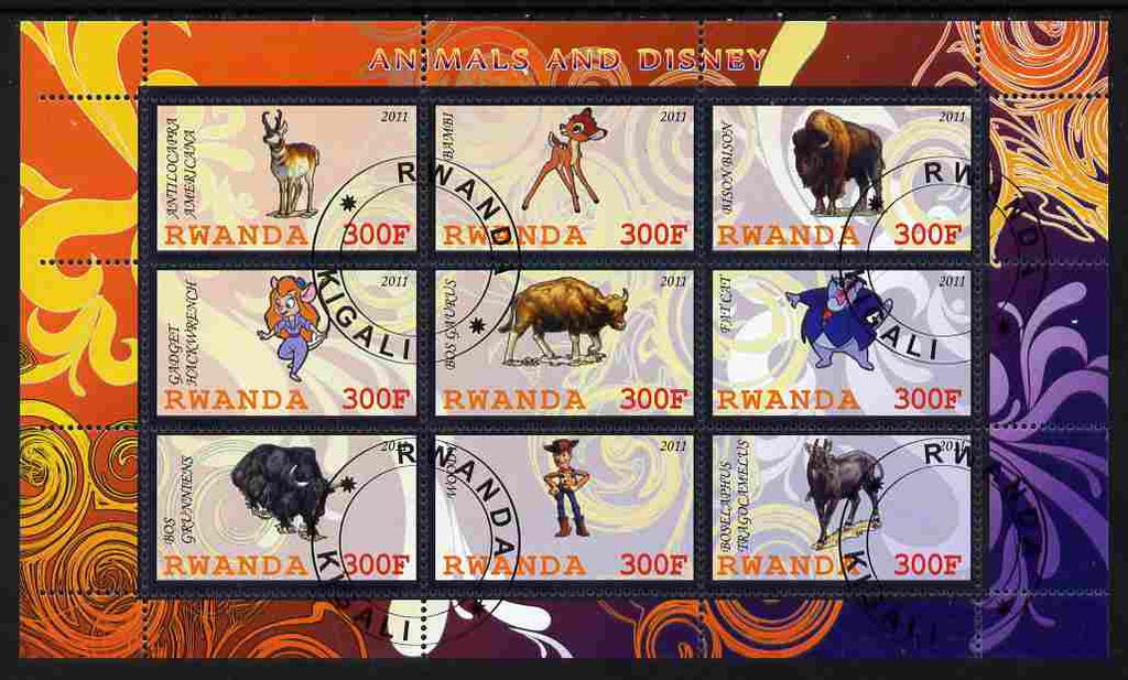 Rwanda 2011 Animals & Disney Characters #4 perf sheetlet containing 9 values fine cto used