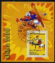 Somalia 2006 Beijing Olympics (China 2008) #03 - Donald Duck Sports - Table Tennis & Skiing perf souvenir sheet fine cto used