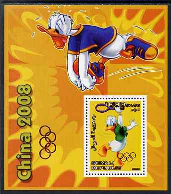 Somalia 2006 Beijing Olympics (China 2008) #04 - Donald Duck Sports - Running & Tennis perf souvenir sheet unmounted mint with Olympic Rings overprinted on stamp and in margin at lower left