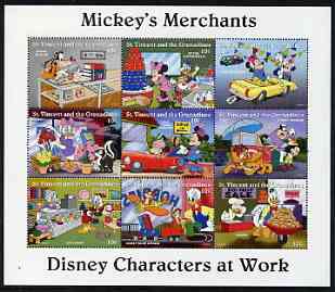 St Vincent - Grenadines 1995 Disney Characters at Work - Mickey's Merchants perf sheetlet containing 9 x 10c values unmounted mint