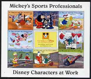St Vincent - Grenadines 1996 Disney Characters at Work - Mickey's Sports Professionals perf sheetlet containing 8 x 10c values unmounted mint