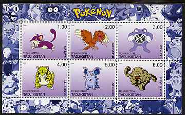 Tadjikistan 2000 Pokemon #3 perf sheetlet containing 6 values unmounted mint