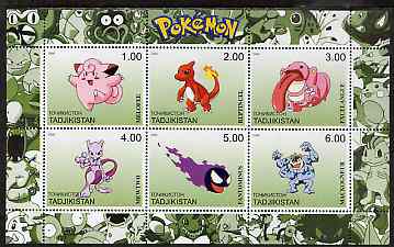 Tadjikistan 2000 Pokemon #8 perf sheetlet containing 6 values unmounted mint