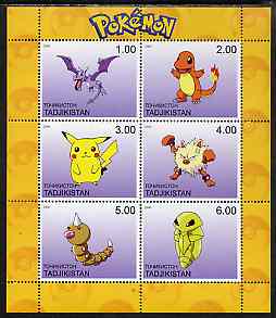 Tadjikistan 2000 Pokemon #9 perf sheetlet containing 6 values unmounted mint