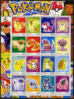 Timor (East) 2001 Pokemon #02 (characters nos 17-32) perf sheetlet containing 16 values unmounted mint