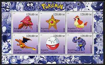 Turkmenistan 2000 Pokemon #5 perf sheetlet containing 6 values unmounted mint