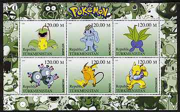 Turkmenistan 2000 Pokemon #8 perf sheetlet containing 6 values unmounted mint