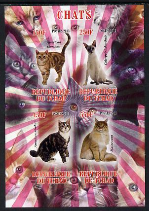Chad 2013 Domestic Cats imperf sheetlet containing 4 values unmounted mint