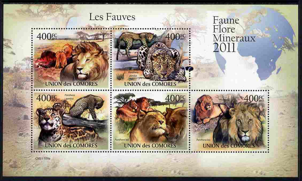 Comoro Islands 2011 Big Cats perf sheetlet containing 5 values unmounted mint