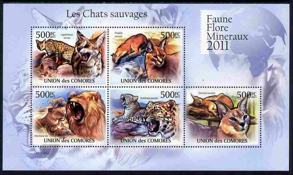 Comoro Islands 2011 Wild Cats perf sheetlet containing 5 values unmounted mint