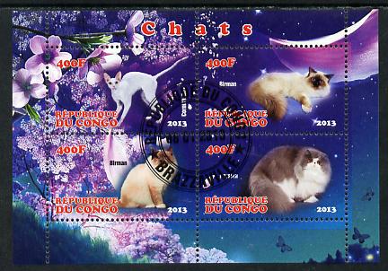 Congo 2013 Domestic Cats perf sheetlet containing 4 values fine cto used