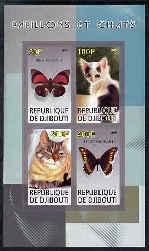Djibouti 2009 Butterflies and Cats #2 imperf sheetlet containing 4 values unmounted mint