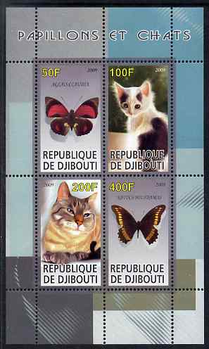Djibouti 2009 Butterflies and Cats #21 perf sheetlet containing 4 values unmounted mint