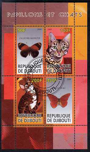 Djibouti 2009 Butterflies and Cats #3 perf sheetlet containing 4 values fine cto used