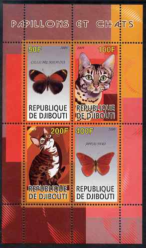 Djibouti 2009 Butterflies and Cats #3 perf sheetlet containing 4 values unmounted mint